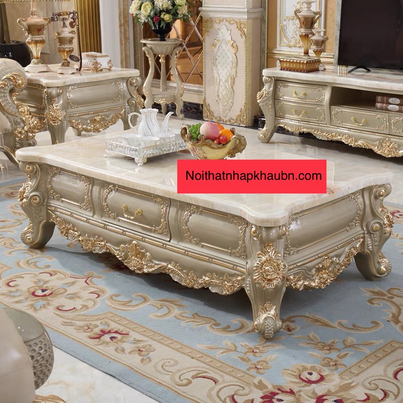 Là mẫu bàn trà được kết hợp cùng sofa phòng khách hoặc dùng để bài trí trong không gian nội thất tân cổ điển. Bàn trà thiết kế theo phong cách tân cổ điển Pháp, Ý,…. Kiểu dáng bàn độc đáo với các họa tiết, hoa văn nổi bật. Sẽ là sự lựa chọn thông minh cho không gian sống của gia đình bạn.